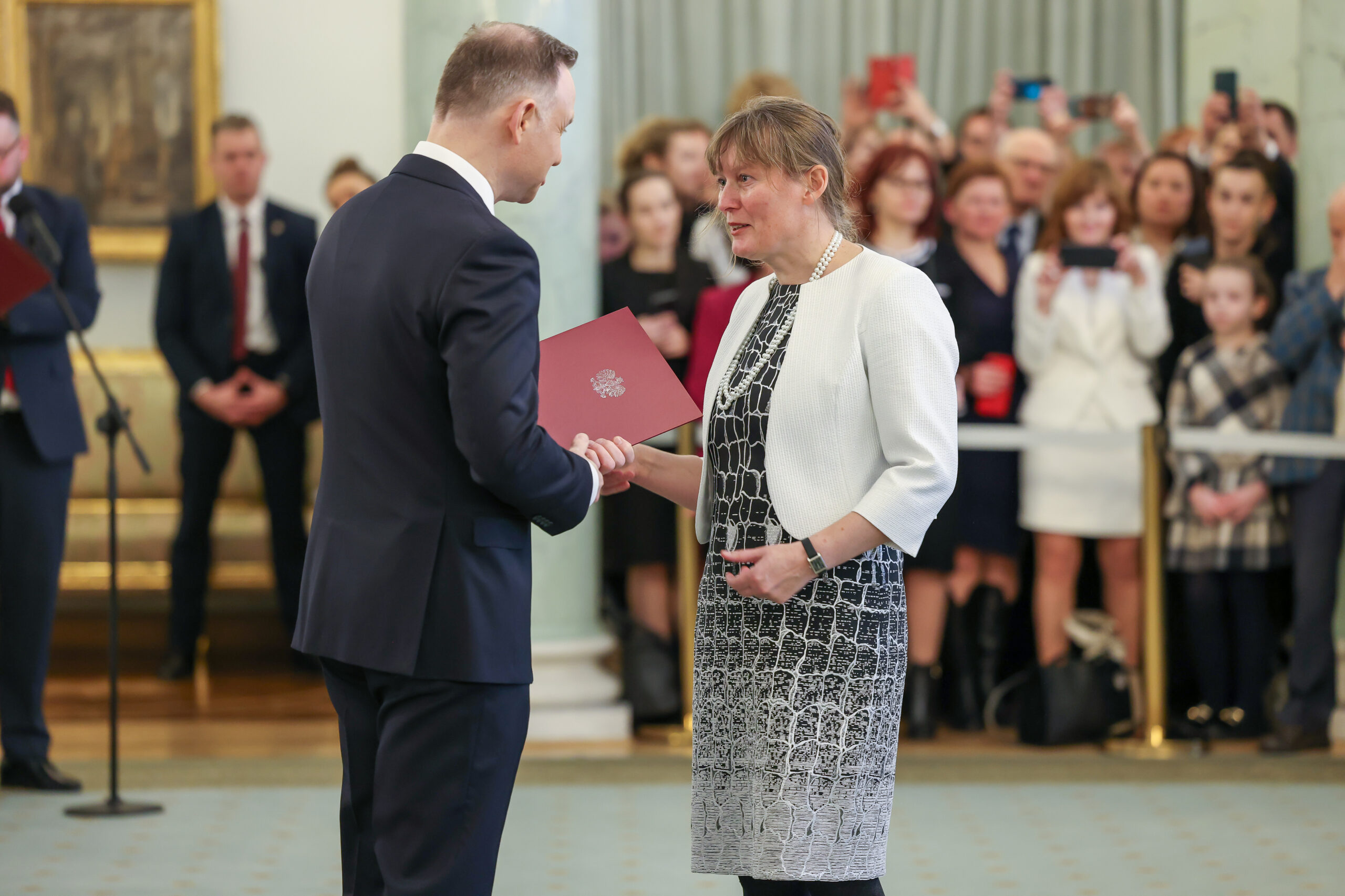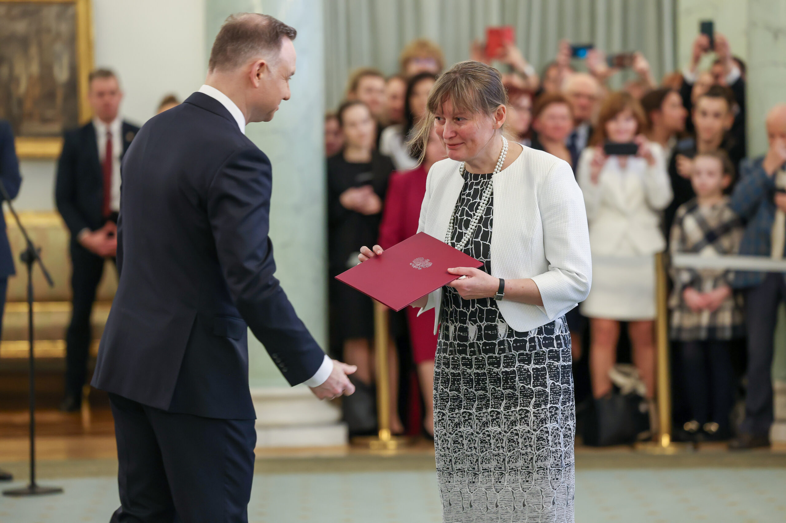 - Prezydent RP Andrzej Duda oraz prof. dr hab. Anna Cedro (INoMiŚ US), fot. Marek Borawski/KPRM